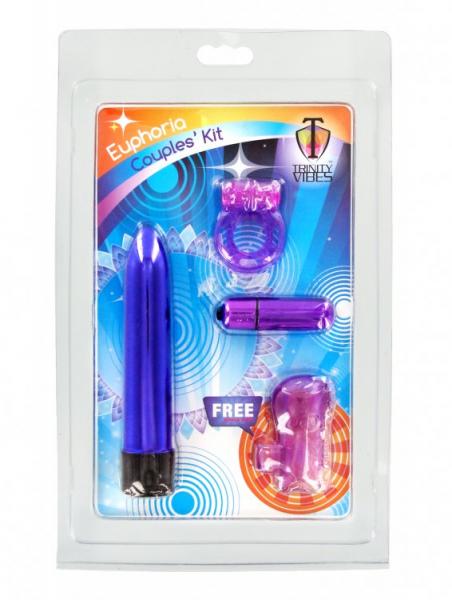 Entice your lover with the Euphoria Kit of sensory stimulators! A powerful, 5 inch variable speed slim vibe is ready for when you want to tease and please. A super stretchy, vibrating cock ring helps him maintain a firmer erection while stimulating you at the same time! This coupling is not complete without the addition of a BONUS finger tickler vibe. There is also an optional missile bullet that can be used in combination with the finger tickler or alone. Each exciting toy is waterproof so you can make it a date in the bath tub!