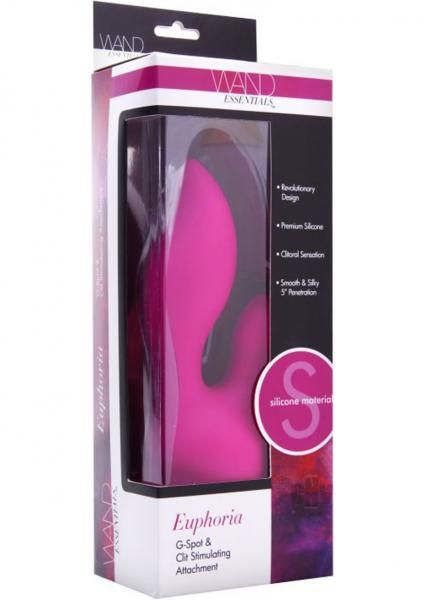 Euphoria is a velvet soft silicone wand attachment that features an ergonomically curved dual stimulation design. The larger petal is used internally, for divine penetration and direct G-spot stimulation, while the smaller petal is wonderful for clitoral stimulation. Both petals carry vibrations from your wand into the beautifully curved tips, to create a sensation of pure ecstasy.