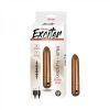 Add some excitement to your bedroom with the Exciter Multi-Function Bullet. andnbsp;This power packed 3 function, rechargeable bullet features a tapered end for pin point stimulation for the clitoris, nipples, testicles, or any other erogenous zone! andnbsp;Available in two colors, copper and silver. andnbsp;Please clean before and after each use with toy cleaner. andnbsp;Power on by pressing the power button and holding for 3 seconds then press again to cycle through the speeds. andnbsp;To charge, please the pin charger to the base of the bullet and the USB end into a power source. 3 speeds7 modesRoHS compliantPhthalates freeWaterproofMaterials: Silicone andamp; ABSSize: Length – 3.75, Width – .75Rechargeable: Charging Time – 70 minutes, Working Time – 60 minutes, Voltage – 3.7V