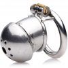 If you have no need for it, lock away your partners penis! This beautiful and unique chastity device wraps up that cock in tight stainless steel, leaving a number of holes open to allow for urination and airflow. Three different sizes of O-rings are included to find a comfortable or uncomfortable fit, depending on what your slave deserves. The most unique feature of this device, however, is the internal locking system. Insert the key into the brass keyhole and turn to straighten out the lock. The lock can then be inserted into the hinge. With another twist of the key, your slave will recognize your complete control. Measurements: O-rings are 1.5, 1.75, and 2 inches in diameter. Cage is 1.75 inches in length, 1.25 inches in diameter. Material: Stainless steel. Color: Grey. Note: Includes locking mechanism and two keys.