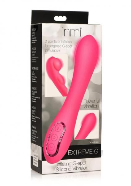 Experience targeted G-spot stimulation with a curved, inflatable vibrator! This toy already has a slight curve to the shaft which helps stimulate you where it counts. The added feature of two inflatable bulbs softly rubbing against your G-spot and adding sensual pleasure to each movement enhances the experience even more and gets you to that Big O even faster! Combine the added pressure from inflation with 3 speeds and 7 patterns of vibration that buzz you into a state of bliss! The silky smooth, phthalate-free, premium silicone is also perfect for deep massages that are body-safe and smooth. Use only water-based lubricants for best results! You can also take it in the shower or get it wet! It is rated IPX5 waterproof so it can handle low-pressure water jets, but do not submerge it underwater. Recharge after each use with the USB cable provided. To clean, wash with warm water and mild soap then spray with a toy cleaner and pat dry. Grab your lube and turn on the toy. Keep it deflated as you slide it inside. Once comfortably within you, let it inflate and experience the stimulating pressure of the inflated bulbs as they press against your G-spot! Every movement is a little more intense and pleasurable. The bulbs soften just enough and form against your shape so nothing is too hard and it won’t poke you. Instead, you can easily rock and writhe in pleasure as this toy gives you exactly what you’re craving! Lay a towel down beneath you… it might get wet! Measurements: Overall length: 8.2 inches. Insertable length: 5.5 inches. Widest insertable diameter: 1.6 inches (deflated) 2 inches (inflated). Materials: Silicone, ABS plastic Color: Pink Note: Do not use with silicone-based lubricants.