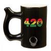 The Skull & Bones Mug is fully functional with a pipe and mouthpiece. The pipe is attached to the front of the mug, where you can pack your tobacco and light it. Smoke filters up the hollow handle to the mouthpiece on the top. This product is recommended for adult use only.