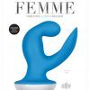 The Femme Rocks literally! Made from body safe silicone and ABS plastic, Femme Vibrating G-Spot Rocker has a firm silicone shaft and wide clitoral cup that houses its powerful motor. The smooth and seamless shaft is bent to an extreme g-curve that easily slides to your deepest erogenous zone. The durable ABS plastic base is curved allowing the Femme to rock back and forth during penetration. A simple ergonomic controller provides 4 exhilarating levels of vibration. The Femme is waterproof and safe to use with any lubricant. Uses 2 AA batteries, not included.