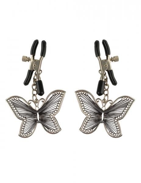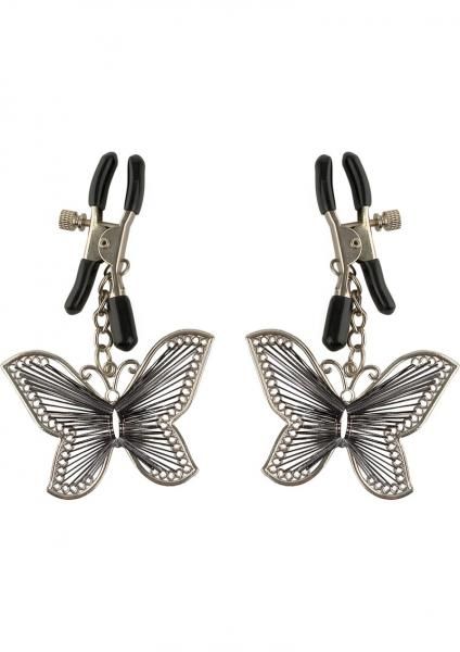 Make your nipples perk with pleasure with these beginner Pipedream Butterfly Nipple Clamps. Made with durable metal clips and covered in soft rubber liners, these clamps are perfect for beginners and fetish enthusiasts alike. The amount of pressure you apply to the nipple is adjustable by turning the screw, while the butterflies give you subtle stimulation with each movement.