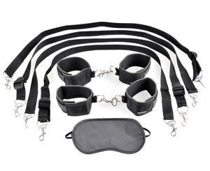 Cuff your lover to your mercy. Let them know you are in charge! The adjustable tethers can be tied to just about anything you can conjure up, the only limitation is your imagination! Kit includes: 4 adjustable fantasy cuffs, 4 adjustable tethers and a free Love Mask.