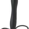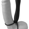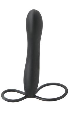 Double your pleasure and double the fun with this strap on dildo two is better than one! The silicone ring on the top of the shaft acts as a performance enhancing cock ring, while the larger bottom ring loops around his balls for a super tight squeeze. You instantly become twice the man you were before, thanks to a smooth silicone shaft underneath that is ready to double the trouble.The silicone shaft has a tapered tip for easy entry and is smooth and seamless all the way around. It is firm enough so that it will not bend during penetration. With this handy little sling strapped on, you and your lover can experience the thrill of double penetration without having to involve another partner!