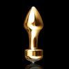 Fetish Fantasy Gold Mini Luv Plug Gold. Enjoy incredible back door bliss with this elegant Mini Luv Plug. The sleek anodized metal is smooth to the touch, nonporous, and body safe. Perfect for beginners, the thin, tapered tip eases insertion, while the wide crystal adorned base ensures safe and easy removal. This hygienic material is great for water based temperature play, and is small enough to take with you wherever you go. Once inserted, the only thing your lover will see is the beautiful crystal base sparkling bright in the light!