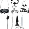 Kit includes: Ball Gag, Butt Plug, Mini Mite Vibe, Love Mask, Handcuffs, Nipple Chain Clips, Hot Wax Candle, Feather Tickler, Cat O’ Nine Tails, Grey Silk Tie, Ben Wa Balls. Unisex. Battery Info: Requires 1 AA Battery, Not Included. Materials: Nylon, Polyester, Spandex, ABS Plastic, Wax. Country of origin: China.