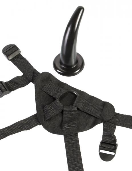 Fetish Fantasy Series Limited Edition The Pegger Black. You teased him first with a tongue or finger, and now he wants more! Give your boy toy the satisfaction he craves with the Pegger strap on. This slim jelly dildo is perfectly sized for his first anal encounter. It is small enough not to intimidate but big enough to deliver big time thrills. Plus, it is cleverly curved to reach his sweet spot with ease. The durable 4 way nylon straps easily adjusts to fit most sizes while the plush lined harness comfortably stays in place when the action heats up. One size fits most. Always clean before and after use plus between partners. Features and Functions: Phthalates Free, Harness Compatible, Unisex. Materials Harness Nylon, Dildo PVC, O-Ring Silicone. Country of origin China.