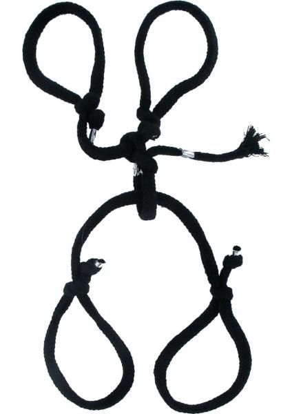 Secure your lover in a classic bondage position with this rope hogtie restraint. Perfect for beginners and strong enough for the pros, the rope easily adjusts to quickly secure your subject with a simple tug. The knots come tied and pre-assembled. Just slide them over your partners wrist and ankles and adjust them until they are snug. What happens next is up to you but it is bound to please.