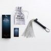 Fifty Shades of Grey Official Collection Please Sir Flogger. A vision in black and metallic silver, this faux leather flogger whip stands out against traditional bondage gear as an exquisite tool of sadism. Delivering teasing strokes and sharp licks, this whip intensifies passions and indulges submissive fantasies. Perfectly sized for travel, this shortened flogger whip is halfway between a genital flogger and a full-sized flogger, making it ideal for delivering delicious stings to any part of your lover’s body. Its petite proportions are ideal for travel, allowing you to slip this whip into a handbag or suitcase discreetly.