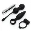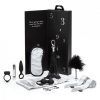 Bullet vibrator requires 1 AA battery, not included. Sold separately. Cock Ring requires 2 AG3/LR41 batteries, 6 included. Gift set includes tapered butt plug, restraints and blindfold, adjustable nipple clamps, vibrating cock ring, Ben Wa Balls, bullet vibrator, small flogger and a feather tickler.