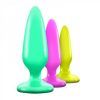 Firefly Pleasure Plugs Trainer Kit Multicolor 3 piece anal sex toys. Butt plugs vary in size. Firefly Pleasure Plugs Glow in the dark. Made using phthalate free Thermoplastic Elastomers TPE. Sizes Mini Butt Plug, Small Butt Plug and Medium Butt Plug.