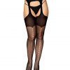 Fishnet Suspender Garter Pantyhose O/S from Dreamgirl Lingerie. Fishnet and opaque knit suspender garter pantyhose with elastic waistband. Front eyelet pattern seam and solid back seam.