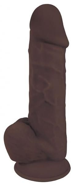 Features: 7 inches Silicone Dildo with Balls Chocolate Brown. Materials 100% Silicone Sleeve with Silexpan Core. Dimensions 1.75 inches by 8 inches. Bulk weight 14 ounces. Care clean with soap or toy cleaner and warm water. Top rack dishwasher safe. Boil for 3 minutes to sterilize. Use only with water based personal lubricants.