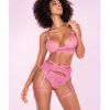 Leave an unforgettable mark with this romantic three-piece set in embroidered mesh. Top with adjustable straps, matching thong and garter belt.