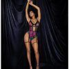 Elegant floral lace merging with edgy illusion boning on sheer mesh create a bodysuit that will leave you speechless. Lace up back detail. Adjustable straps and crotch fastening. Medium coverage.
