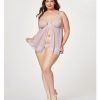 Floral Mesh Chemise & G-String. 3X/4X Size: 20-22. Cup: D/DD. Bust: 46in.-50in. Waist: 40in.-44in. Hip: 50in. -56in.