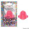 Vibrating tongue teasers. Stretchy and comfortable vibrating tongue teaser. Slip onto your tongue for enhanced oral play. Body-safe material. Batteries included.