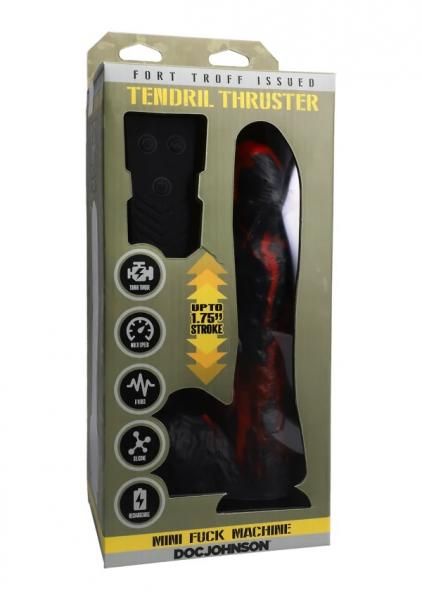 With the Tendril Thruster, it’s all about the back-and-forth stroke to deliver the feel of a hard poundin textured top. With a stroke of just under 2 inches, the Tendril Thruster nearly matches the stroke of big fuck machines. The super charged engines of the Tendril Thruster deliver the power to drive deep. We made sure it’s strong enough to penetrate the tightest holes. The mushroom-shaped head is super soft, cushy, for EZ entry, and the tendrils give extra stimulation. Controlling this power top is easy use the remote or the buttons on the balls. You have 2 speeds of fuckin, which offer slightly faster versions of the basic stroke. Unlike traditional fuck machines, ours also offers 8 vibration settings. Powered by a state-of-the art lithium battery, the run time is around 45 minutes. USB rechargeable, and it takes about 1.5 hours to recharge. Made of Premium Liquid Silicone, so you can use any lube. While the Tendril Thruster is not whisper quiet, we felt that an engine with a little roar was essential to deliver the thrust that piggy holes crave.