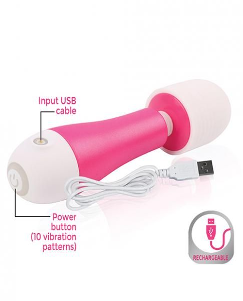 Fuzu Rechargeable and Travel Size Mini Wand Pink from Doctor Love. Sleek, slender and lightweight, the Mini Wand fits comfortably in your or your partner’s hand for pinpoint precise maneuvers during sex, alone-time and all sorts of foreplay scenarios. At the touch of a button, 10 distinct patterns of steady, pulsating and escalating vibration pulse and throb through the silky and removable silicone capped head.