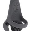 This unique silicone toy has three features that interconnect – a large ring attaches to a hollow double-sided cup on one end and a vibrating wedge shape on the other. Textured and flexible, this harness, hoop & rounded scoop combo offers unique possibilities for playtime pleasure.