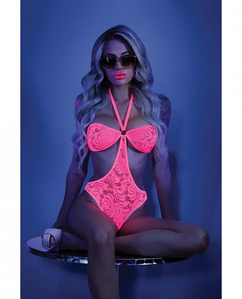 Glow Black Light Halter Bodysuit W/open Sides Neon Pink L/xl
