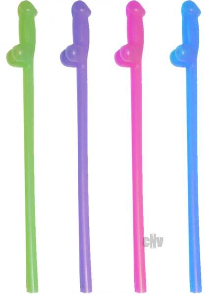 Vibrantly glowing straws in assorted colors! Hold under a bright light for 1-2 minutes, go into any dark room and add a little naughtiness to all of your favorite beverages! 8 straws per pack.