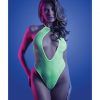 Keyhole Cutout Halter Teddy with G-string Cut Back and Snap Closure