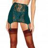 Gold Corded Stretch Lace 4 Piece Set Peacock Green One Size Fits Most O/S from Dreamgirl Lingerie. Lingerie set comes with Bra, Collar, G-String Panties and a Matching Skirt. Short Floral Lace Patterned Chemise Peacock Green. Collar comes with metal chain attachments with a v-neckline. One size fits most. Ladies sizes 2 to 14. Cups D/DD. Bust 32 inches to 38 inches. Waist 24 inches to 31 inches. Hips 34 inches to 40 inches. 90 pounds to 160 pounds. Care hand wash in cold water. No bleach. Line dry.