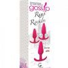 Gossip Rump Rockers from Curve Novelties is something to talk about. This 3 piece anal plug trainer set offers graduated sizes for extra comfort. The curved, ergonomic base allows for easy wear ability. Can be warmed or cooled for a variety of sensation. Unscented, non-porous, hypoallergenic. 100 percent silicone, 100 percent waterproof, non-vibrating butt plugs.