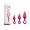 Gossip Swirlies Anal Trainer Set Violet Purple from Curve Toys. Textured Silicone Trainer Set. 3 textured shaped graduated sizes to build up to when training. Textured ripples at tip for intense sensation. Bulb shaped design for a weighty feel. Suction cup base with slim neck for comfortable all day wearability. Hypoallergenic. Unscented. Ergonomic. Travel friendly. Easy clean up. Hygienic. Non-porous material. Pthalate free and Latex free. Care and maintenance: clean with soap and warm water or toy cleaner. Use only with water based lubricants. Dimensions small butt plug overall length 2.3 inches. Diameter at widest 1.1 inch. Medium butt plug overall length 2.8 inches. Diameter at widest 1.4 inches. Large butt plug overall length 3.5 inches. Diameter at widest 1.7 inches. Weights small butt plug 0.7 ounce. Medium butt plug 1.5 ounces. Large butt plug 3.1 ounces. Material 100% Silicone made with Silicone Silk
