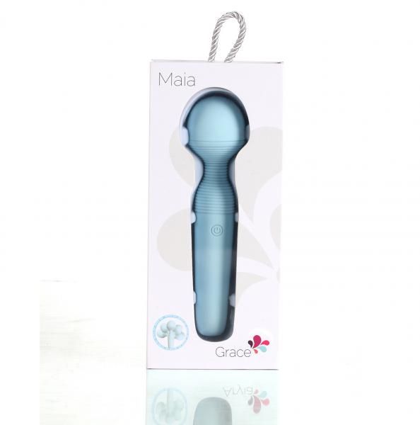 Grace Bendable Vibrating Wand Teal Rechargeable Adult Toy from Maia Toys. Strike a Pose with the Maia Novelties Grace. The Grace Vibrator features a bendable neck that stays in position, allowing to pose the Grace in the method that pleases you most. The Grace is a 15 function Vibrating Rechargeable Massage Wand. Its petite frame and bulbous head allow for quick and powerful stimulation. The ergonomic shaped handle is comfortable to hold while the soft, silky feel of the 100% body safe Silicone coating allows Grace to glide across your body. Grace is 100% submersible for wet fun. The Maia Novelties Grace measures 8.5 inches in length and is approximately. 2.5 inches wide at the head. We also include a USB Charging Cable. All our rechargeable products include our 1 year replacement warranty. Specifications: Color Teal Blue. Functions: 15 speeds of pulsating vibrations. Bendable and poseable. Silicone coating. USB Rechargeable. Waterproof vibrations. Submersible for easy cleaning and bath tub play Item dimension 2 inches in height, 2 inches in width, 8.5 inches in length. Categories: Rechargeable Vibrators, Magic Wands, Body Massagers, Sex Toys for Women. 2022.
