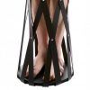 This incredible bondage device is made of thick, durable rubber straps, designed to enfold, enclose, and ensnare your subject. The solid platform base allows your partner to stand inside. As they step on the sturdy wooden platform, the weight pulls the crisscrossed straps downward, securing your subject inside, like a finger trap. Once inside, your partner is caught and at your mercy. The rubber straps will twist around your lover, cradling their body as they spiral upwards, coming together at the top where the straps attach to a sturdy metal ring. Measurements: Cage measures 75 inches in total length, base and top ring measure 12 inches in diameter. Material: Rubber, metal, wood. Color: Black. Note: Please follow proper installation procedures and consider the weight-bearing capability of your installation spot. We would advise installing this item in a beam. These products as with all products on this site are supplied AS IS. No warranty is given either implied or expressed. Products are intended as novelty only, and no representation is made or implied as to their suitability or safety for any particular use. Purchasers use the products entirely at their own risk. The manufacturer or re-seller is not liable for any direct, indirect, incidental or consequential damage or loss howsoever arising caused by use or misuse of the products. This includes, but is not limited to, damage to the products and personal injury or damages due to use or misuse. Warning: This is a NEW item that is not in retail packaging, usually a plain box, wrapped in plastic or a poly bag.