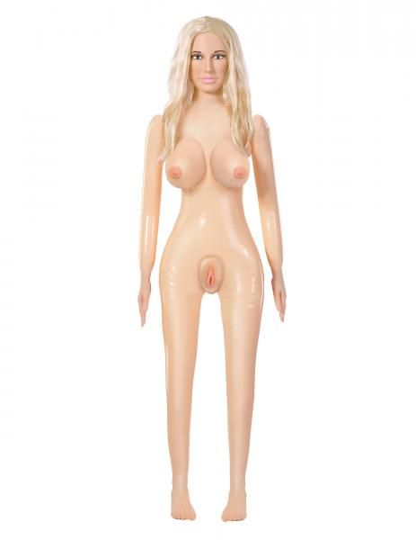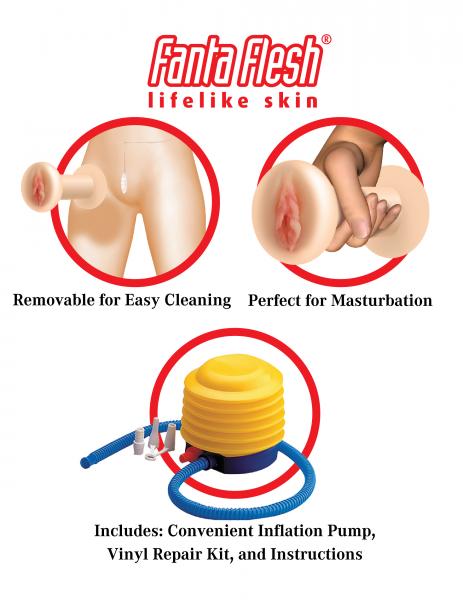 Pipedream Extreme Dollz Hannah Harper Life-Size Love Doll. This incredible life-size inflatable love doll was meticulously designed with realistic features for a truly lifelike experience. Her sexy 3-D formed head features realistic eyelashes and a luxurious head of real hair that’s begging to be pulled! Watch her really come to life with arms that swivel 360 degrees and delightfully painted finger and toenails. Give her firm and perky breasts a squeeze while you enjoy her ultra-lifelike Fanta-Flesh skin, pussy, and ass that feels even better than the real thing! The Fanta-Flesh pussy and ass are removable for easy in-depth cleaning, and can even be enjoyed separately for masturbation. An inflation pump, vinyl repair kit, and instructions are conveniently included. Body: Vinyl. Head, Hands, Breasts & Feet: Silicone. Vagina & Ass: TPR. Hair: Polyester.