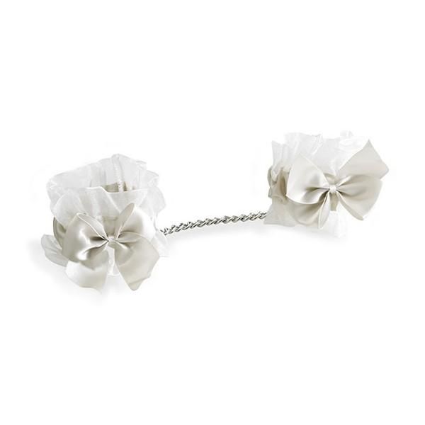 As the fairytale draws to a close, the fun can begin. Invite your Prince Charming for a night he will never forget. Bondage kit includes satin garter, satin handcuffs, satin pasties and feather tickler. Color white.