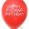 Eight 11 inch balloons emblazoned with, Happy Fucking Birthday! on each side.
