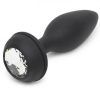 Key features: large vibrating bunny tail butt plug for anal fun and fantasy role play. 5.25 inches circumference and 5 insertable length are great for those with some anal experience. 12 speeds and patterns of vibration to add excitement to your pleasure sessions. Interchangeable magnetic base lets you choose between a sparkling jewel and a fluffy tail. USB rechargeable for battery free fun wherever you are in the world.