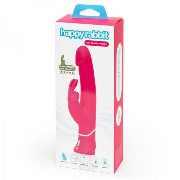 Happy Rabbit Realistic Dual Density Rabbit Vibrator from Love Honey. Over 500,000 sold since 2012. If you love a life like feel, this is the Happy Rabbit for you. Wrapped in unbelievably soft liquid silicone, its thick, realistic shaft offers you 12 vibration functions, while our iconic rabbit ears caress the clitoris with 3 vibration speeds. Use the simple 2 button interface to cycle through the speeds and patterns until you find the combination that drives you wild. There are a w-hopping 15 different functions to choose from so you can find intense blended pleasure and satisfaction. Start jumping for joy, because your Happy Rabbit is completely waterproof for under water pleasure sessions, has a travel lock for peace of mind on the go, and recharges via USB for eco-friendly enjoyment wherever you travel. Happy Rabbit loves water based lube. Squeeze a generous dollop over the shaft and ears for the best slip slidey goodness.Happy Rabbit Dual Density’s vital stats: ears 3 vibration speeds. Shaft 3 vibration speeds and 9 vibration patterns. Key features: luxury rechargeable rabbit vibrator with dual layered silicone for ultra life like sensations during play. Realistic shaft boasts 2 silicone layers for a genuine feel, plus teasing vibrating ears. Explore 15 satisfying functions: 3 in the ears, 12 in the shaft. USB rechargeable. Waterproof vibration, with travel lock for worry free trips away.