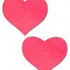 Pastease Neon Pink Day Glow Heart Pasties made of soft yet durable waterproof fleece material. Dimensions 3 inches wide by 3 inches tall Coverage Diameter 1.55 inches.