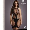 Long dress with a high halter neck design in contrasting fishnet patterns. This dress fits size XXL to 5XL. Thong not included.