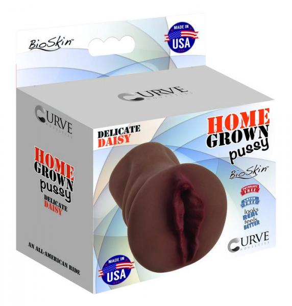 Home Grown Delicate Daisy Chocolate Brown Stroker. Even Better Than the Girl Next Door. Ultra premium, life like BioSkin pussy looks real, feels better.Handmade and hand painted with incredibly authentic detail. Ribbed inner tunnel for an intense stroking session. Tight entry and compact tunnel stretch to take you all in. Open ended design makes clean up a breeze. Use only with water or silicone based personal lubricant.