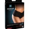 Hookup Panties Remote Lace Peek-A-Boo S-L from Pipedream Products. Premium Panties for play. Want the Hookup on a sexy little secret? These provocative pleasure panties do not just look and feel amazing, they are designed for discreet delights and mind blowing memories, anytime and any place! With these sexy little somethings underneath, you can enjoy seductive sensations and hands free stimulation while you look irresistible and feel incredible! Perfect for date night partner play or your go to for solo satisfaction, Hookup Panties are made for pleasure and crafted with your comfort in mind every step of the way. Dare to be bold and the Hookup Panties will do the rest! Key product features: designed for discreet delights. With Hookup Panties on, you can enjoy seductive sensations and hands free stimulation while you look irresistible and feel incredible! Perfect for date night partner play or your go to for solo satisfaction, Hookup Panties are made for pleasure and crafted with your comfort in mind every step of the way. 10 function, waterproof, vibrating, Rechargeable Bullet with Remote. Vibrating bullet includes a wireless remote so that you or a partner can control the action from up to 25 feet away. Ergonomic Elite Silicone Pleasure Plug allows for the waterproof vibrating bullet to be securely inserted inside of it, delivering thrilling vibrations exactly where you want them most. 1 USB cord charges both bullet and remote. Package contains: 1 Pair of Panties, 1 Pleasure Butt Plug, 1 Rechargeable Vibrating Bullet, 1 Rechargeable Remote, 1 USB Charging Cord. Care instructions: Panties hand wash only with a mild detergent. Hang to dry. The Elite Silicone plug and ABS plastic bullet both clean easily with antibacterial cleaner and warm water. For extra comfort, use a water based lubricant like Moist. The remote is not waterproof. To clean, use a damp towel to wipe off and then wipe dry.Product dimensions: Panties fits ladies sizes SL, 0 to 8. Pleasure Plug length: 3.4 inches, width 2.8 inches, insertable 2.8 inches. Bullet length 3 inches, width .7 inch. Materials Panties lace, plug silicone, bullet silicone, ABS, remote silicone, ABS.