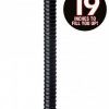 How many bulging ribs can you take from this extra long dildo? This firm, but flexible dong has a boldly ribbed texture to give you even more sensation as you feed it into your hole. How much of this 19 incher can you fit inside you? The powerful suction base anchors to most flat surfaces so that you have the ultimate control, even during solo play. Amp up your size play and take deep probing to a whole new level! This material is body safe and compatible with both silicone and water based lubricants. Clean thoroughly after use with mild soap and warm water. Measurements: 20 inches in total length, 19 inches insertable, 1.5 inches in diameter. Material PVC. Color Black.