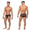 Micro mini shorts, low rise waist, ultra high cut legs, plush cotton waistband, stamped logo, shaft pouch. Sheer with all way stretch, lightweight, breathable fabric. Fabric blend 95% Polyamide, 5% Spandex. From Male Power underwear. Color Black. Men size medium. Waist 32 inches to 34 inches.