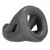 Material plus+silicone Thermoplastic Rubber TPR/silicone blend. Dimensions width 2 inches. Height 2.5 inches. Depth.75 inch to 2 inches. Main hole circumference 3.75 inches. Shaft hole circumference 3.5 inches. Ball hole circumference 3.5 inches.