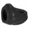 Clutch Cock Ball Sling just feels really good, put it on and be extra Huj! Our plus + silicone Thermoplastic Rubber TPR/silicone blend: silicone for a smooth and warm feel, TPR for amazing stretch and strength. Phthalate free. Stats approximate: width 2 inches, height 2.75 inches, depth 2.25 inches. Main hole circumference 4.25 inches, shaft hole circumference 3.75 inches. Ball hole circumference 3.5 inches. Bulk weight 1.6 ounces. Color Tar Black.