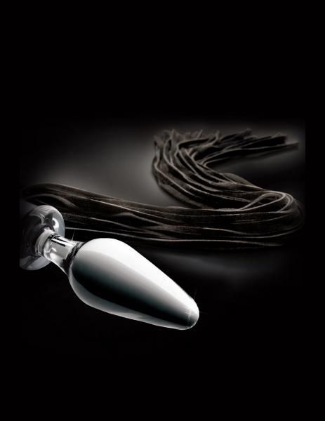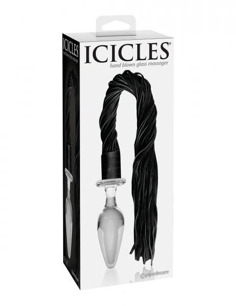 Pipedream Products Icicle line Icicles number 49 combination glass butt plug and whip. Elegant, upscale, and hand crafted with amazing attention to detail, this luxurious line of glass massagers will leave you breathless. Each hand blown Icicle glass plug is sleek, unique, and made to play hard.