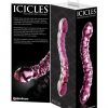 Elegant, upscale, and hand crafted with amazing attention to detail, this luxurious line of glass massagers will leave you breathless. Each hand-blown Icicle glass wand is sleek, unique, and made to play hard. Enjoy double the fun with this luxurious double sided glass massager. Each end features a tapered tip to ease insertion as the bulbous head hits all the right spots. Cleverly curved for explosive G-Spot or P-Spot stimulation, either end of the shaft boasts unique bumpy and ribbed swirl textures that offer endless possibilities for pleasure!