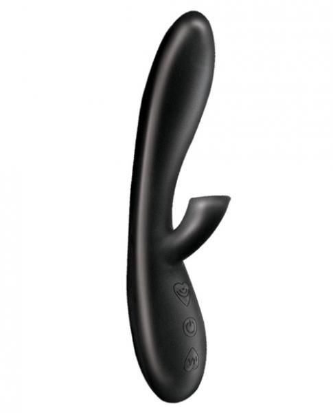 Infinitt Suction Massager One Black rabbit style vibrator from Nasstoys of New York. Features: 12 vibration functions. 12 suction functions. G-spot stimulation and clitoral suction. Materials Silicone shaft, ABS plastic base. Waterproof vibrations. Phthalates free, RoHS compliant materials. Size length 8 inches, insertable length 4.5 inches. USB cable included. Rechargeable, no batteries necessary. Charging time 140 minutes. Working time 70 minutes.